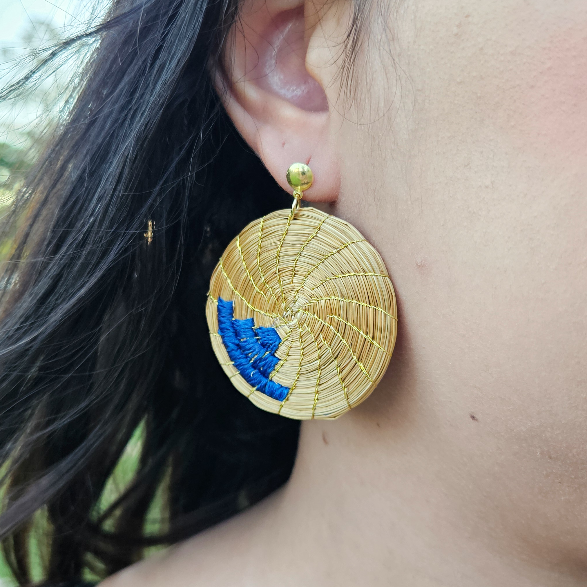 Cada brinco é único, valorizando o trabalho manual brasileiro e a exclusividade de uma peça autêntica. O Capim Dourado, colhido de forma sustentável, realça seu brilho natural incomparável, enquanto o fio Azul Oceano adiciona contraste moderno e sofisticado. Um acessório versátil que combina tanto com looks casuais quanto com produções mais elegantes.